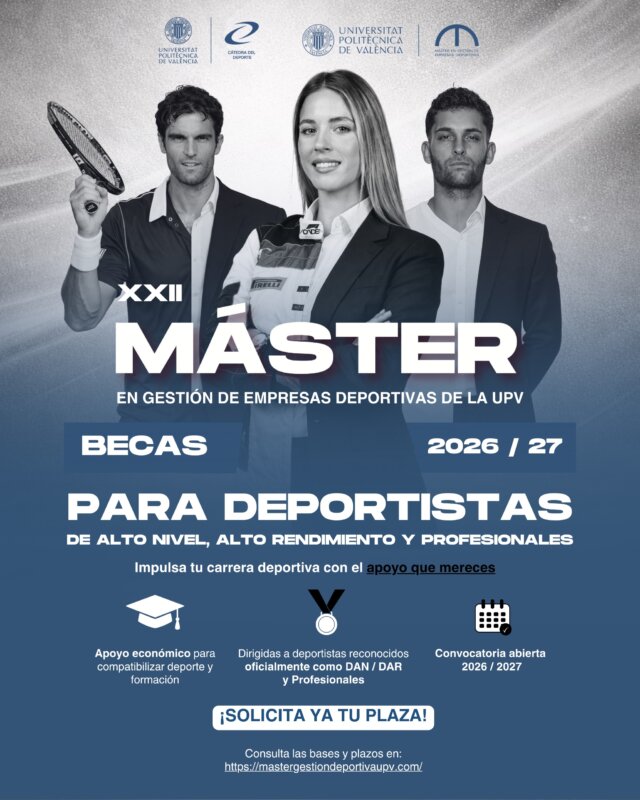 El Máster en Gestión de Empresas Deportivas de la Universitat Politècnica de València, sigue fiel a su objetivo principal: formar a los alumnos en el conocimiento del mercado deportivo, para la dirección, organización y gestión deportiva de entidades y organizaciones deportivas.